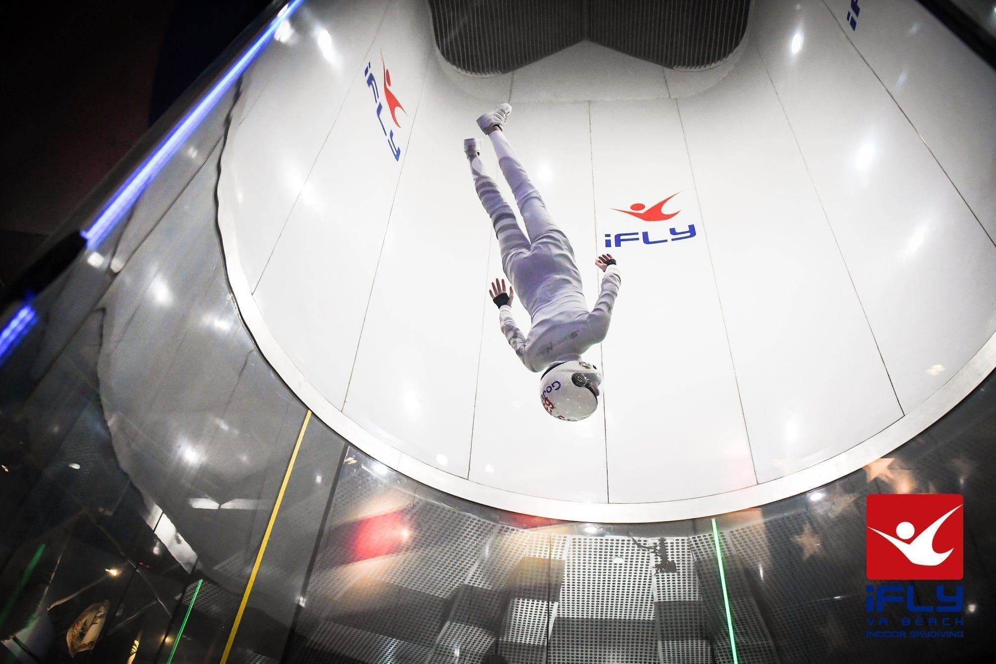 iFLY Va Beach is an indoor skydiving experience that creates true free fall conditions, just like skydiving, without having to jump out of an airplane. iFLY’s vertical wind tunnel generates 1400 horse power from 4 powerful fans, creating a wall-to-wall cushion of air on which you can safely float. There’s no parachute, no jumping, and nothing attaching you to planet Earth. It’s just you and the air, and it’s the most incredible adrenaline rush.