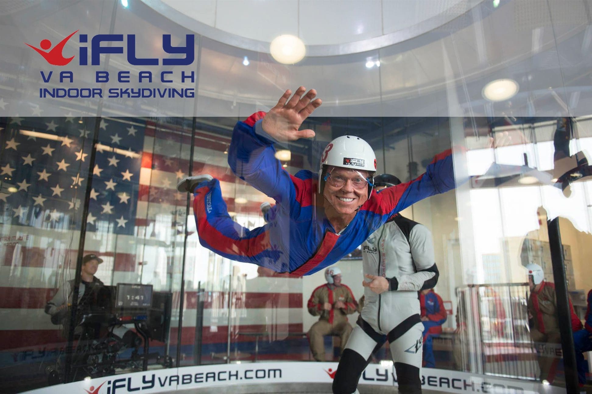 iFLY Va Beach is located at the Virginia Beach Oceanfront on 25th and Pacific Avenue. Indoor skydiving at iFLY Va Beach is a great activity for entertainment and recreation seekers out for a day of fun with family and friends, corporate customers looking for a unique team outing, educators interested in innovative science field trips for students and competitive skydiving athletes. No experience is necessary. Just about anyone can fly, including those with physical disabilities. Children as young as 3 to adults as young as 103 have flown with us. iFLY offers group rates for 6 or more as well as Student, Senior Citizen, Military, First Responder discounts.