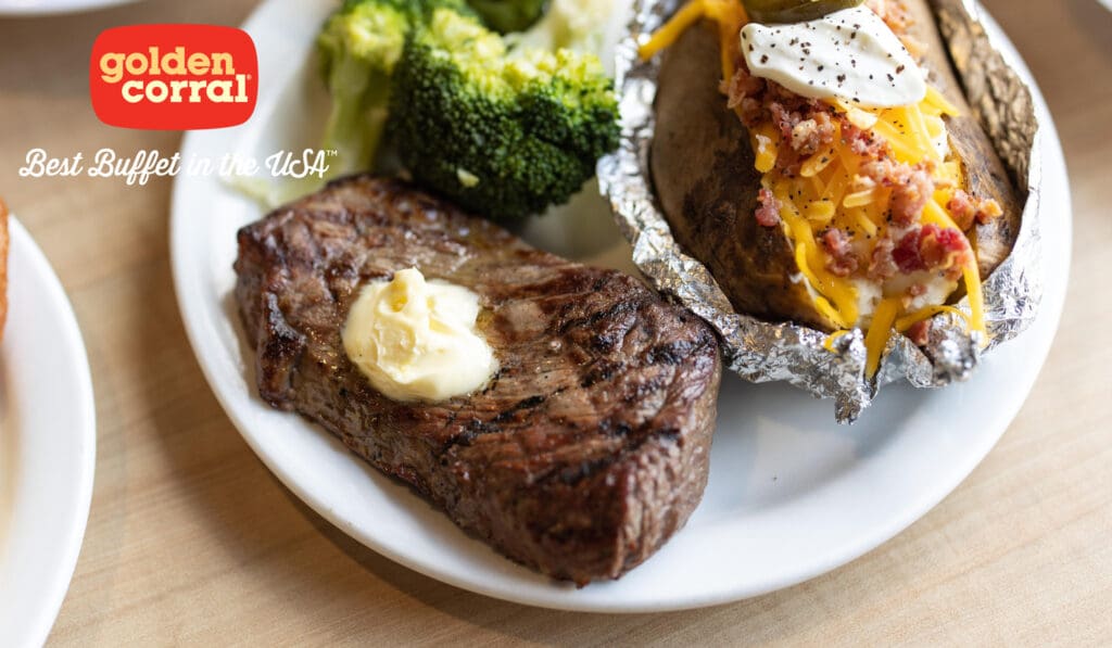 Golden Corral’s legendary endless buffet features an abundant variety of delicious all-time favorites and new menu offerings for breakfast, brunch, lunch and dinner. Guests can choose from over 150 items including USDA, grilled to order sirloin steaks, pork, seafood, and shrimp alongside traditional favorites like pot roast, fried chicken, meatloaf, mashed potatoes, mac and cheese, Bourbon Street Chicken, fresh salads, our famous yeast rolls, the ALL NEW Smokehouse and more!