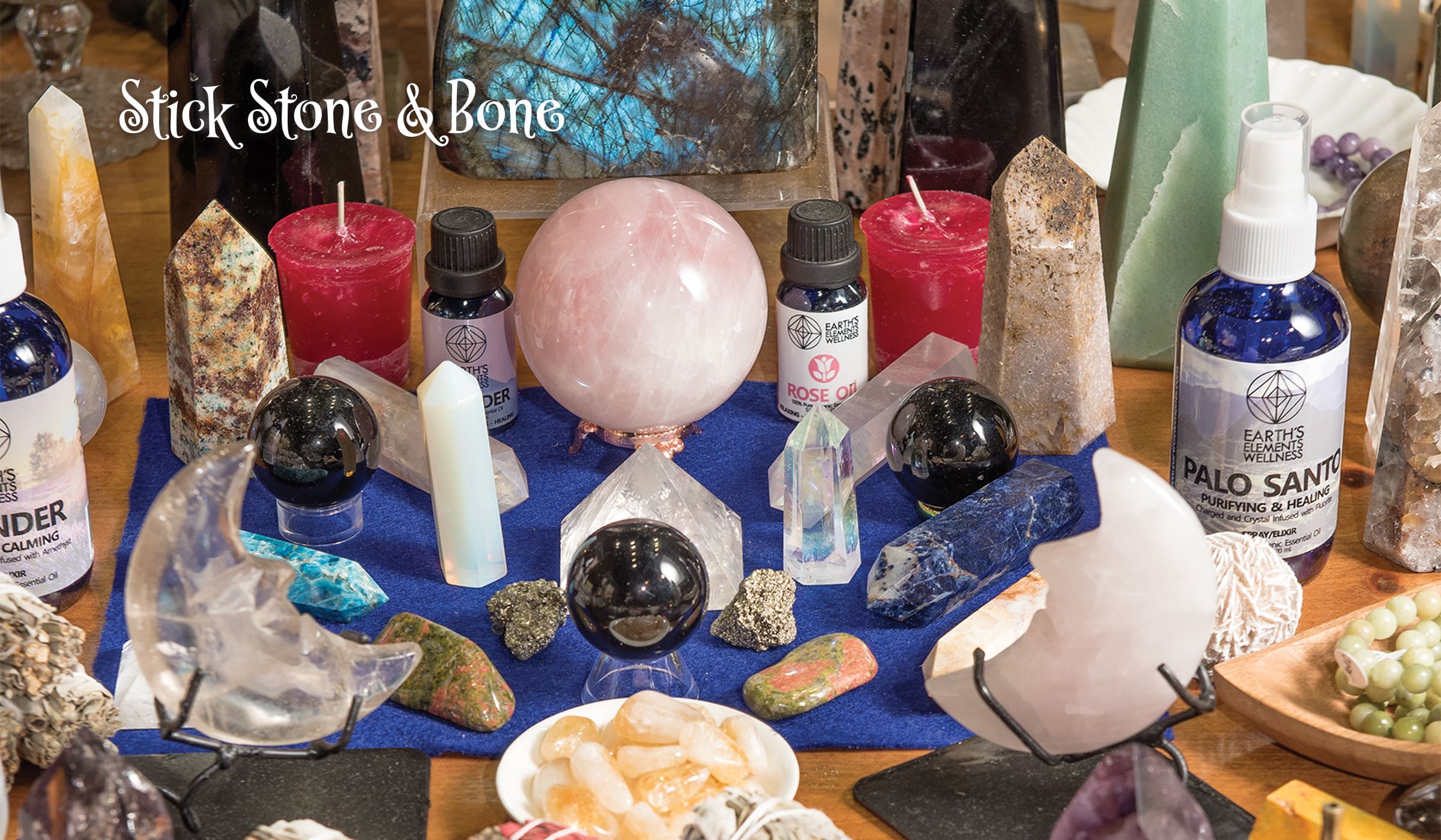 Today Stick Stone and Bone continues its dedication to provide our customers and community with spiritually uplifting and beautiful products. We provide crystals and gems for visual inspiration. Lovely jewelry for adornment and to allow you to wear the energy that those crystals and gems can give. We provide incense and smudging herbs to purify and enhance your environment which creates a welcoming and relaxing space. We provide candles for natural light and fragrances to delight you.